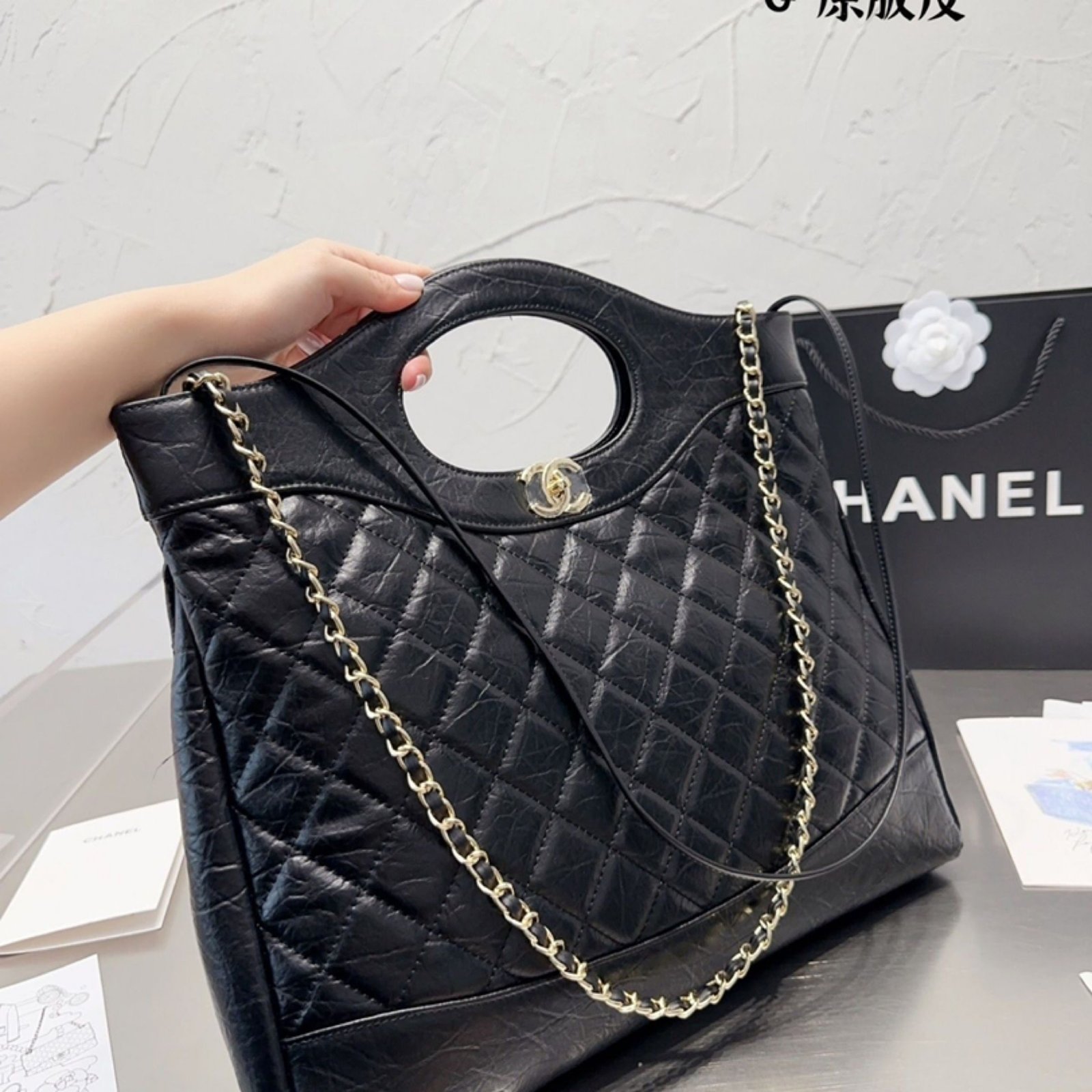 • The iconic quilting on the bag is meticulously done with precise stitching, creating the characteristic diamond-shaped pattern that CHANEL is renowned for.