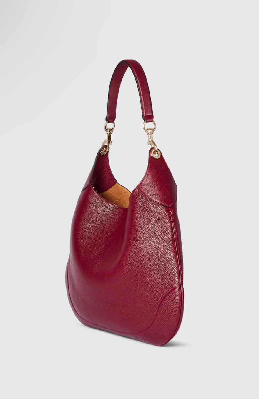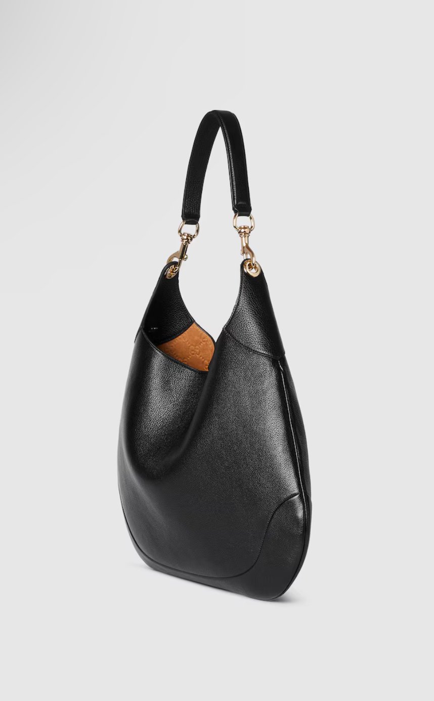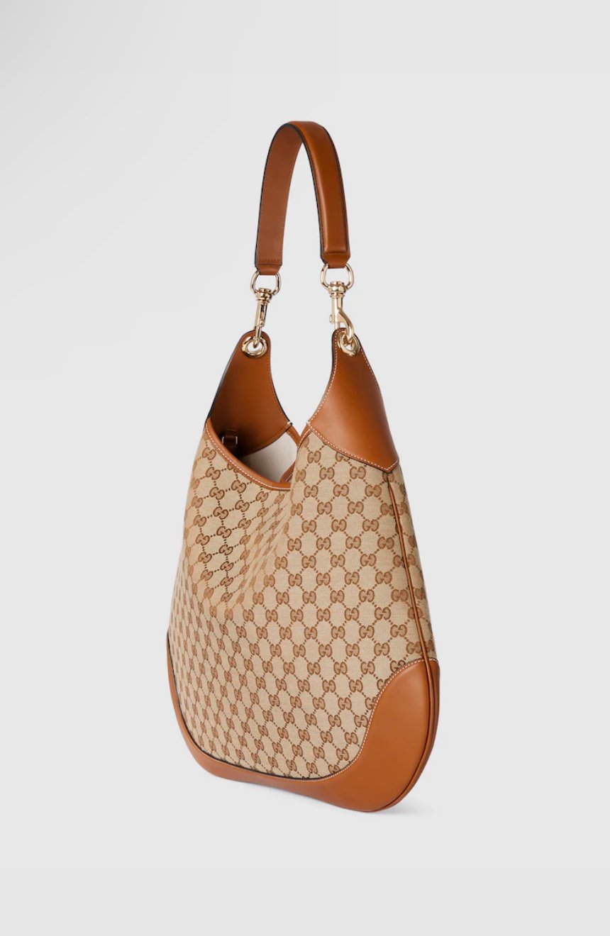 Introducing the Gucci B half moon handbag. Available in Black, Red or Brown with GG Canvas