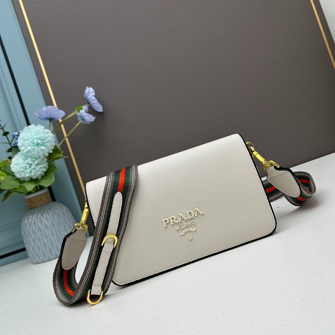 Introducing a medium-sized shoulder bag inspired by the sophisticated designs of Prada. This elegant piece features a refined and minimalist design, perfectly complemented by lustrous gold hardware.