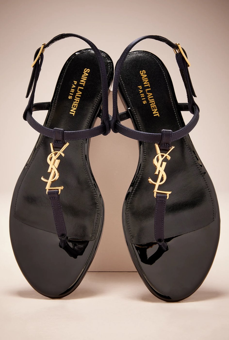 Saint Laurent Cassandra YSL Medallion Flat Sandals
